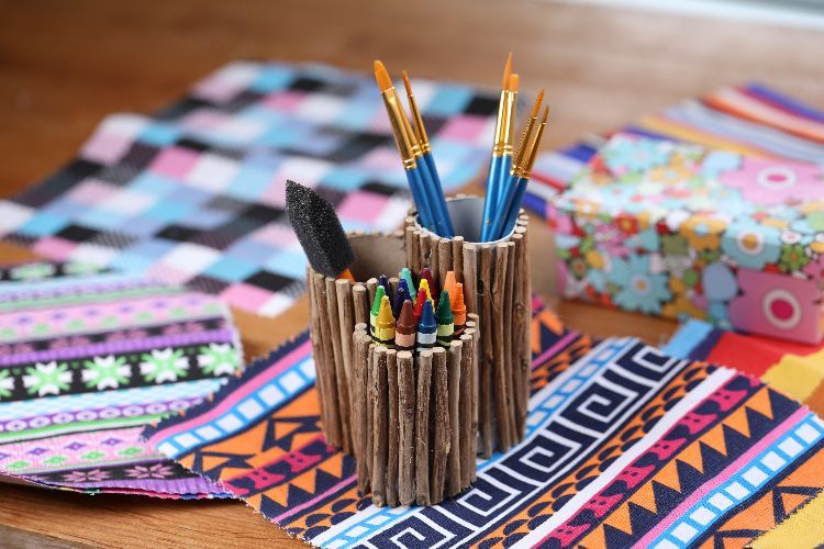 3. Twig pencil holderThis project is super thrifty. You were already going to throw away those rolls, so all you have to do is go out and collect some twigs to complete this DIY.
