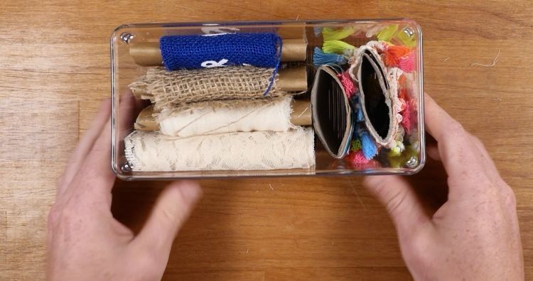 12. Ribbon and string organizerSay goodbye to tangled strings and ribbons strewn about your craft box. Keep them tightly wound, neat and organized with the idea below.
