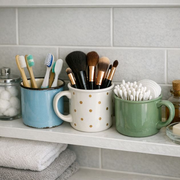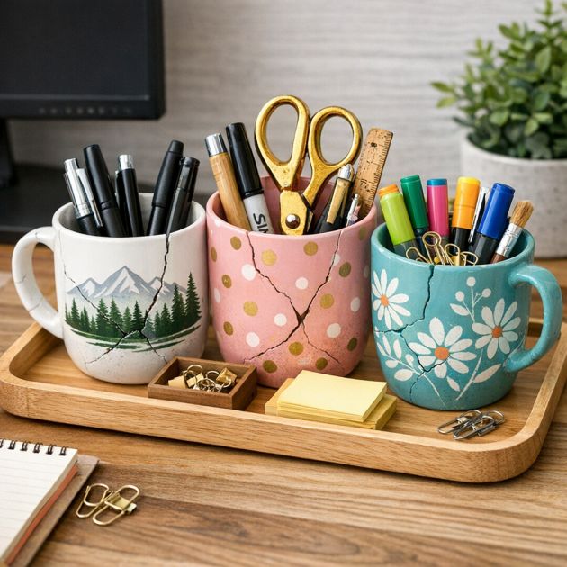 Cracked mugs can be repurposed as stylish and functional desk organizers, perfect for keeping your workspace tidy. Use them to hold pens, pencils, scissors, or other office supplies. The depth and width of a standard mug make it ideal for accommodating various items while keeping them easily accessible.To add a personal touch, consider decorating the exterior of the mug with paint or decals that match your office decor. Arrange multiple mugs on a tray or a designated area of your desk to create an organized and aesthetically pleasing space. This simple yet effective solution not only reduces waste but also enhances productivity by keeping your essentials within reach.4. Transform Old Mugs Into Bathroom Storage Solutions