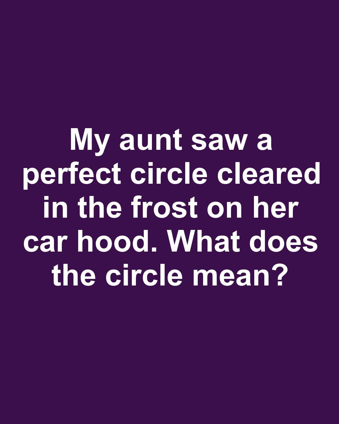 My aunt saw a perfect circle cleared in the frost on her car hood. What does the circle mean?