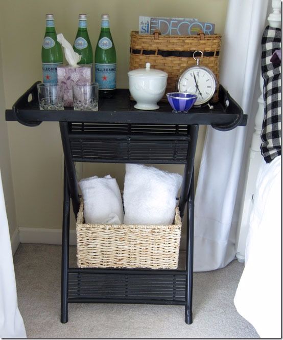 Turn an old end table into a pretty butler table or minibar. You’ll save a lot of money with a little DIY magic. You’ll need an old table and a tray or wicker basket. A few coats of paint and a dash of creativity results in this stunning piece