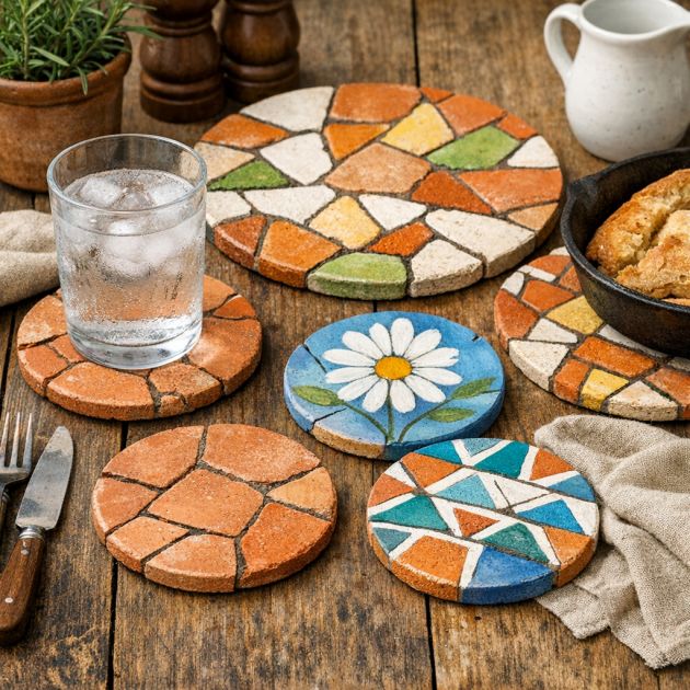 Mosaic stepping stones and path edging can add a touch of artistry to your garden, and broken terra cotta saucers are perfect for this project. Start by collecting pieces in various sizes and shapes. Arrange them on a stepping stone mold or along the edge of a path to create a visually appealing pattern.Mix mortar according to the package instructions and spread it evenly over the surface you are working with. Press the terra cotta pieces into the mortar, ensuring they are securely embedded. Allow the mortar to set for at least 24 hours before using the stepping stone or path. This project not only recycles broken saucers but also adds a personal touch to your outdoor spaces.3. Craft Rustic Coasters and Trivets for the Table