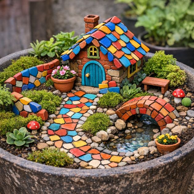 Broken terra cotta saucers can be used to create an effective drainage layer in pots and planters. Place shards at the bottom of containers before adding soil. This helps prevent water from pooling at the bottom, which can lead to root rot.Use smaller pieces to avoid taking up too much space in the pot, and ensure there’s still enough room for soil and plant roots. This simple practice not only recycles broken saucers but also promotes healthier plant growth by improving drainage.5. Make Mini Fairy Garden Features and Accessories