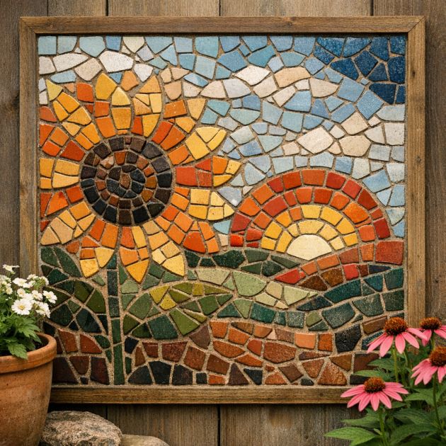 Broken terra cotta saucers can serve as effective natural pest barriers and plant collars. Use larger shards to encircle the base of plants, deterring pests like slugs and snails that dislike crawling over rough surfaces.These pieces also help retain soil moisture and prevent erosion around the plant base. For best results, ensure the shards are partially buried to keep them in place and choose pieces that are at least 2 inches wide for optimal coverage.10. Assemble Decorative Wall Art and Garden Panels