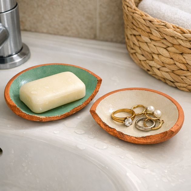 Add a rustic, artistic flair to your home decor by using broken terra cotta saucers to embellish picture frames and mirror borders. Collect shards of varying sizes and shapes to create a mosaic effect.Use a strong adhesive to attach the pieces to wooden or metal frames, arranging them in a pattern that suits your style. Consider painting the underlying frame a contrasting color to make the terra cotta stand out. Once the design is complete, apply a sealant to protect the surface and enhance the colors.7. Upcycle Into Soap Dishes and Sink-Side Catchalls