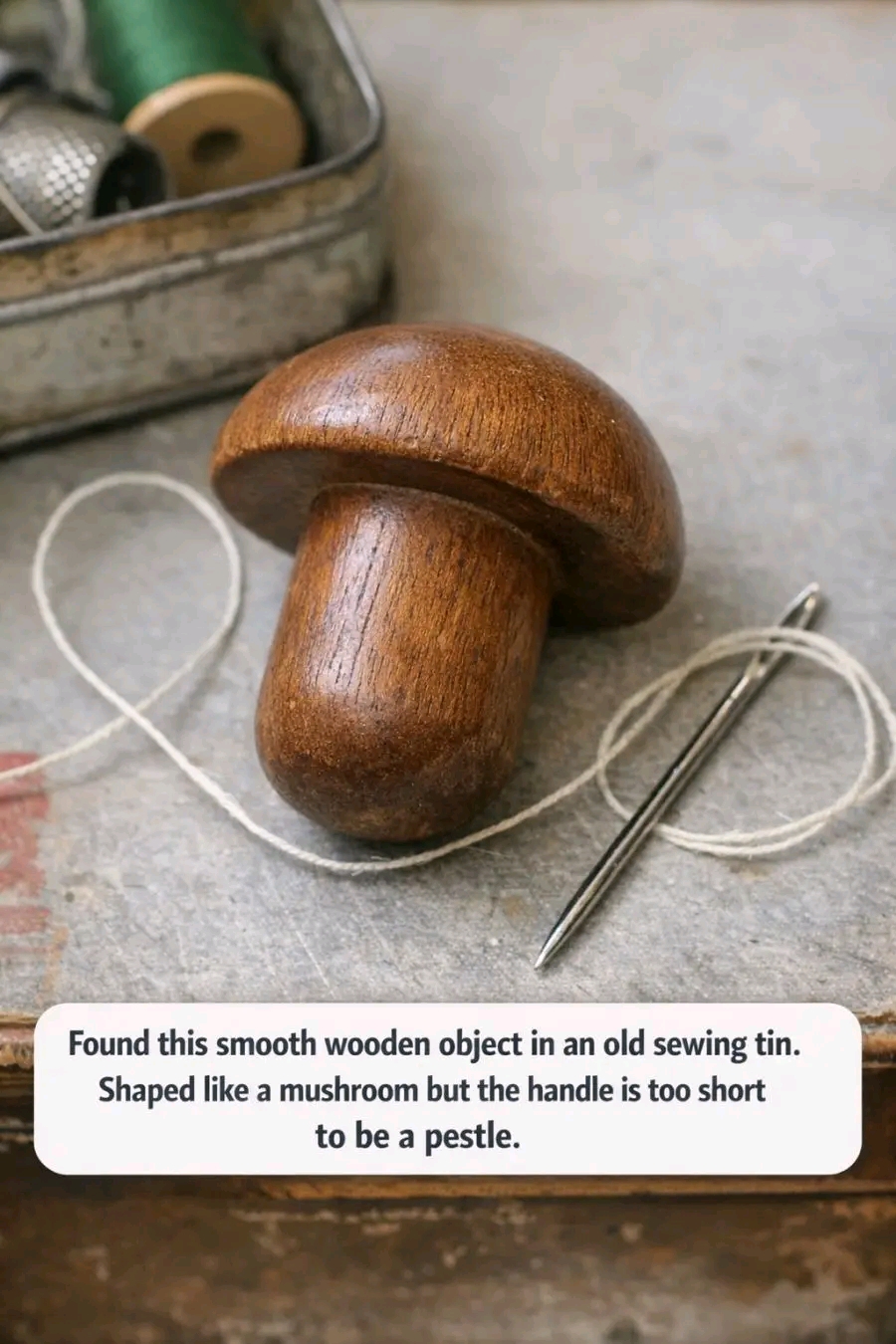 Found this smooth wooden object in an old sewing tin. Shaped like a mushroom but the handle is too short to be a pestle.