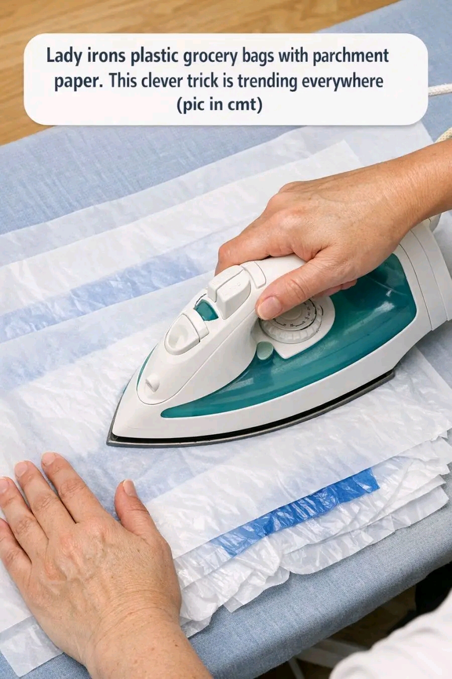 The transformation of everyday plastic grocery bags into a chic, waterproof tote bag is not only a clever recycling trick but also a sustainable fashion statement. By utilizing simple materials like parchment paper and an iron, this DIY project is perfect for those who want to reduce waste and create a functional item. This method is trending because it combines sustainability with creativity, offering a unique way to upcycle plastic bags that would otherwise contribute to environmental pollution.This DIY waterproof tote can complement a minimalist or eco-friendly interior design theme. Hang the tote on a stylish hook near the entryway for an easy grab-and-go solution, or use it as a decorative storage option in a mudroom or laundry area. The neutral tones of the white and blue plastic can seamlessly blend into various color palettes, adding a touch of environmentally-conscious sophistication to any space.DIY Waterproof Tote from Upcycled Plastic Bags