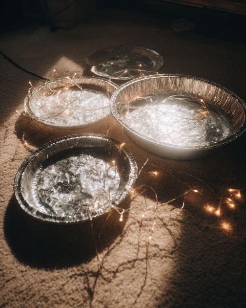 Lady pierces tin trays with string lights. This cheap decor trick is going viral fast