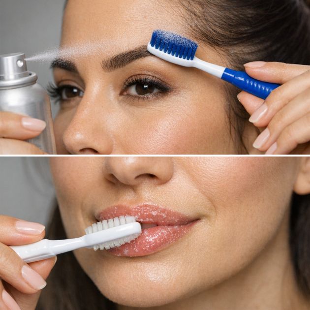 Old toothbrushes can find a new purpose in your beauty routine. For taming eyebrows or baby hairs, use a clean toothbrush to brush them into place. You can spray a bit of hairspray on the bristles for extra hold. Additionally, toothbrushes can be used to exfoliate lips. Apply a small amount of lip balm or petroleum jelly and gently brush your lips in circular motions to remove dead skin, leaving them soft and smooth.