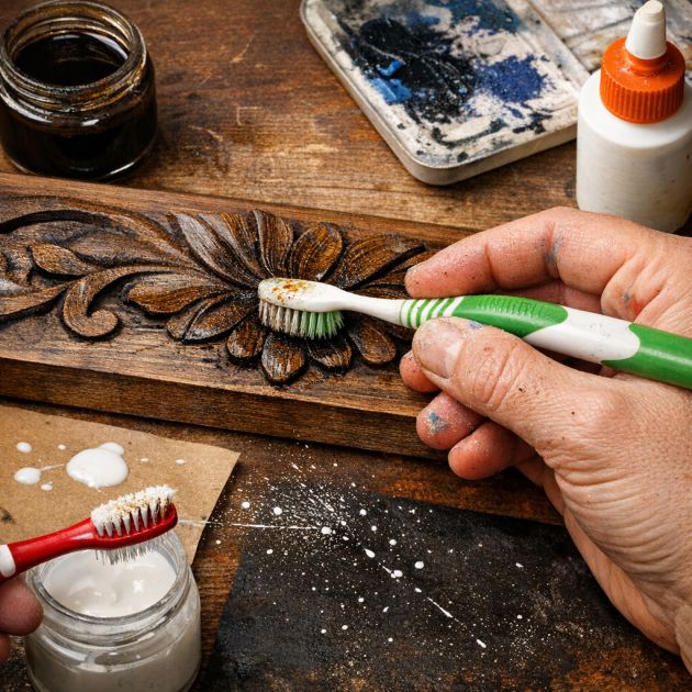 Crafters and artists can repurpose old toothbrushes as detail brushes for painting and staining projects. The stiff bristles are perfect for adding texture or for splattering paint in a controlled manner. Use them for applying glue or varnish in small, precise areas. When working with wood stains, a toothbrush can help apply finishes to carved details or intricate designs, ensuring an even and thorough application.