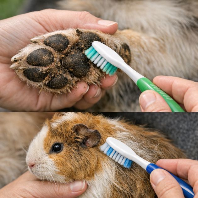 Pets often bring dirt into the house on their paws, and an old toothbrush can help keep them clean. Use a toothbrush to gently brush dirt and debris from between your pet’s paw pads after walks. You can also use it for grooming, especially for small pets like rabbits or guinea pigs, where a soft-bristled toothbrush can help untangle fur and remove loose hair without causing discomfort.