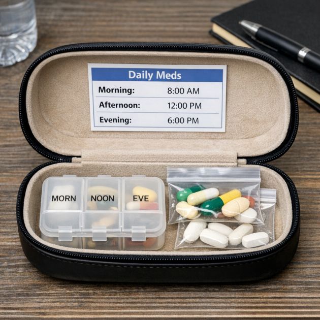 Eyeglass cases are discreet and ideal for carrying medications or vitamins. Arrange your daily pills in a small pill organizer or zip-lock bags, and place them inside the case. This method keeps your medications protected from moisture and damage, while also maintaining privacy. Additionally, the case can be labeled with your medication schedule, making it a convenient option for those who require regular doses while traveling or at work.