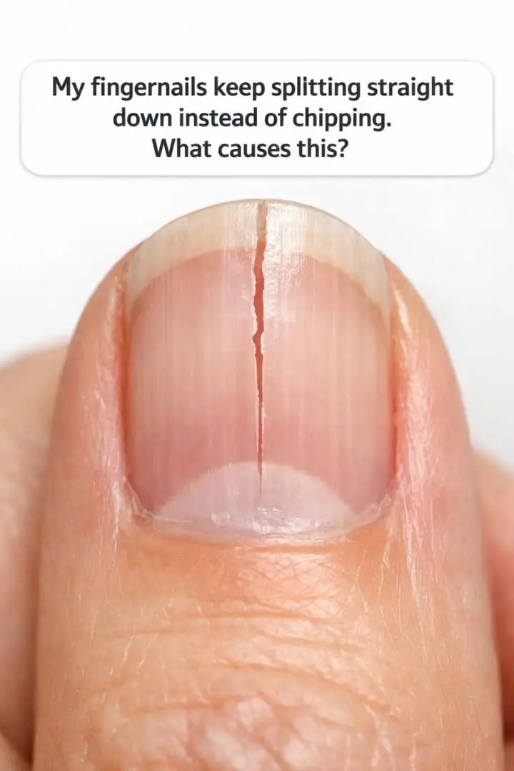 Our fingernails are more than just protective covers for our sensitive fingertips; they are also indicators of our overall health. However, when you notice that your fingernails are splitting straight down the middle instead of simply chipping or breaking at the edges, it can be both concerning and uncomfortable. This type of nail damage can lead to pain, infection, and an unattractive appearance, prompting many to seek answers and solutions.Understanding why nails split in this particular way is crucial for addressing the problem effectively. While occasional nail damage is normal due to everyday wear and tear, consistent splitting down the middle might indicate underlying issues that need attention. In this article, we will explore the various causes behind this phenomenon, how nail growth works, and what you can do to prevent it.1. What It Means When Nails Split Straight DownWhen nails split straight down, it is often referred to as onychorrhexis. This condition is characterized by the presence of longitudinal ridges and splits, which can be painful and unsightly. Unlike horizontal splits that occur at the free edge of the nail due to external trauma, vertical splits often suggest deeper structural issues within the nail matrix where the nail originates.Vertical splitting can be an indicator of nutritional deficiencies, chronic exposure to moisture or chemicals, or underlying medical conditions. It’s essential to pay attention to other accompanying symptoms, such as discoloration or changes in nail thickness, to determine the root cause of the issue. Consulting with a healthcare professional can help diagnose the problem accurately.2. How Normal Nail Growth Works—and Where Splits BeginNails are composed of keratin, a protein also found in hair and skin. They grow from the matrix, located under the cuticle at the base of the nail. As new cells form, the older ones are pushed out, forming the hard plate that we recognize as the nail.Splits typically begin when there is a disruption in this growth process. Factors such as damage to the cuticle or nail bed can affect the health of the nail matrix, leading to weak spots. Over time, these weak spots can develop into full splits, especially if the nails are subjected to additional stress or trauma.3. Everyday Trauma: Typing, Picking, And Other Habits That Crack NailsEveryday activities can contribute significantly to nail splitting. Typing on keyboards, playing musical instruments, or using nails as tools to open packages can all exert stress on the nails. Additionally, habitual nail picking or biting can introduce micro-tears that eventually lead to larger splits.To minimize trauma, it’s advisable to maintain short nails and use the pads of your fingers instead of your nails for tasks. Wearing gloves while performing manual work can also provide a protective barrier, reducing the risk of splits.4. Dryness And Dehydration: When Nails Lose Their FlexibilityJust like skin, nails require moisture to remain flexible and resilient. Dehydration, whether from insufficient water intake or environmental factors, can lead to brittle nails that are prone to splitting. Exposure to harsh soaps, frequent hand washing, and dry weather conditions can strip nails of their natural oils, exacerbating the problem.Incorporating a good hand and nail care routine with moisturizing creams or oils can help maintain nail health. Products containing ingredients like lanolin or jojoba oil are particularly effective at sealing in moisture and preventing splits.5. Nutrient Gaps: Iron, Biotin, And Other Deficiencies Linked To SplittingNutritional deficiencies can manifest in various ways, including through the condition of our nails. Iron deficiency, for instance, is a common cause of brittle and splitting nails. Similarly, a lack of biotin, a B-vitamin, can result in weak nails that are more susceptible to damage.Ensuring a balanced diet rich in vitamins and minerals can help maintain healthy nails. Foods high in iron, such as red meat, spinach, and legumes, as well as those rich in biotin, like eggs and nuts, should be included in your diet. Supplements can also be considered, though it’s best to consult with a healthcare provider before starting any new regimen.6. Aging, Genetics, And Naturally Brittle NailsAs we age, changes in nail texture and strength are common. The nail matrix can thin over time, leading to more frequent splitting and breakage. Additionally, genetics play a role in nail health, with some individuals naturally predisposed to more fragile nails.While we cannot change our genetic makeup or halt the aging process, adopting protective measures and maintaining a proper nail care routine can mitigate some of these effects. Regular filing, moisturizing, and avoiding harsh treatments can help preserve nail integrity.7. Manicures, Acrylics, And Harsh Chemicals That Weaken The Nail PlateFrequent use of nail polish, acrylics, and gel manicures can weaken the nail plate over time. The chemicals in nail products, particularly those used for removal like acetone, can dry out nails and contribute to splitting.Opting for gentler nail care options and allowing nails to breathe between manicures can prevent excessive damage. If acrylics or gels are a must, consider giving your nails a break every few weeks to recuperate and strengthen.8. Skin And Nail Disorders: Onychorrhexis, Psoriasis, Eczema, And MoreCertain skin and nail disorders can cause or exacerbate nail splitting. Onychorrhexis, characterized by longitudinal ridges and splitting, is often linked to skin conditions like psoriasis and eczema. These conditions can affect the nail matrix and disrupt normal growth.Managing these underlying conditions with appropriate medical treatments can improve nail health. Dermatologists can provide targeted therapies to reduce inflammation and promote healthier nail growth.9. Medical Conditions And Medications That Can Show Up In Your NailsNails can often reflect s