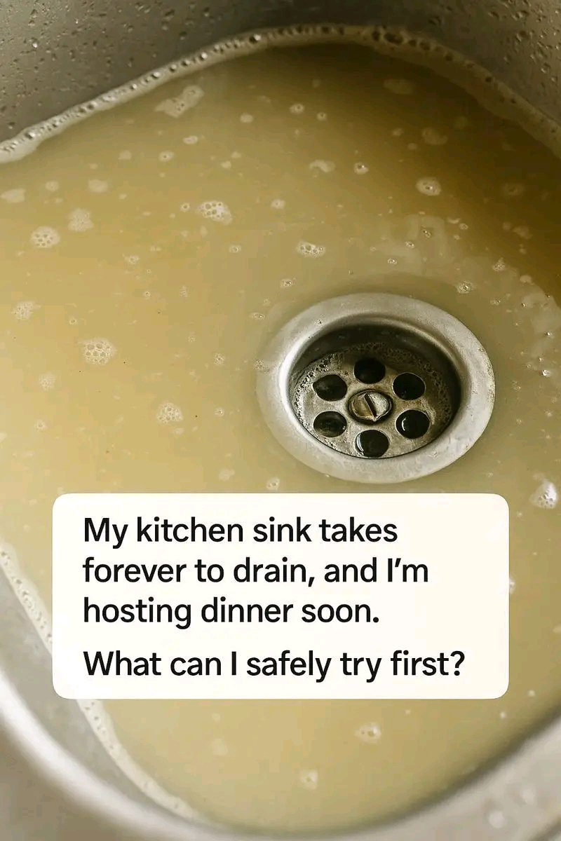 My kitchen sink takes forever to drain, and I’m hosting dinner soon — what can I safely try first?
