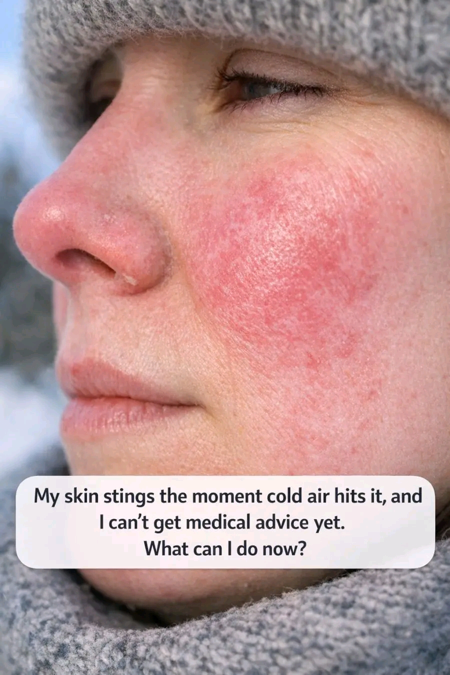 My skin stings the moment cold air hits it, and I can’t get medical advice yet. What can I do now?