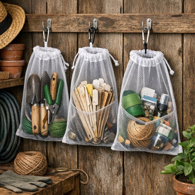 Gardeners often need to sift soil or compost to remove debris and unwanted materials. Mesh produce bags can be used to create simple, effective garden sifters. Cut the bag to fit over a wooden frame or a bucket, securing it with nails, staples, or a tight-fitting elastic band.