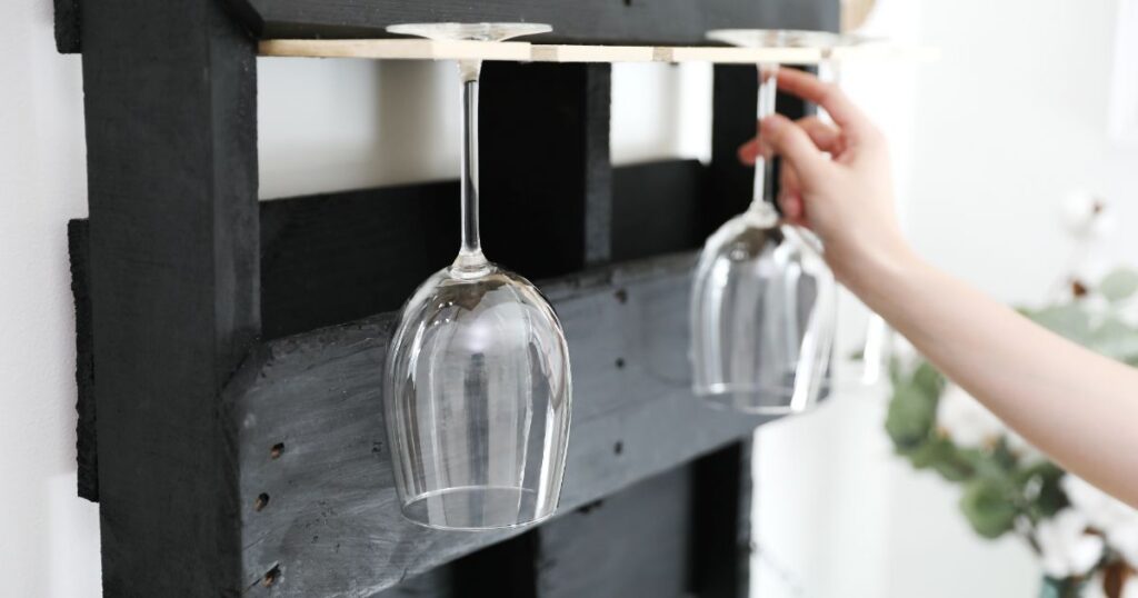 Wine rack bar with a palletHaving a wine rack in the kitchen or dining area is an inexpensive way to add an element of luxury to your home. This rack not only holds bottles but also hangs glasses and has a tabletop for a cheese plate. The spaces between the pallet boards are already the perfect width for holding bottles, so all you’ll need to do is add paint and a few details to make this piece multifunctional. Set aside some project time this weekend, and find the how-to guide here.