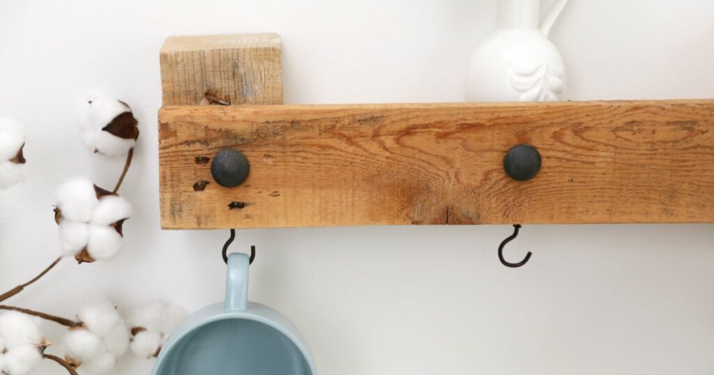 Small kitchens don’t have to be short on style or storage. With this pallet shelf, the possibilities for storage are endless. The top of the shelf can hold canisters, jars or glasses, whereas the hooks hold coffee cups, tea towels or keys. The best part is that this takes no time at all to make because it uses one row of boards already connected on the pallet.