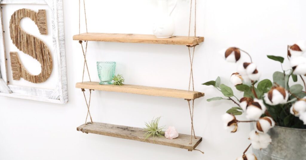 If you love DIY projects, then discovering a wooden pallet that you can use, is nothing short of finding your own gold mine. Pallets are a versatile source of wood for a number of home improvement projects, from spice racks and vinyl record displays to wall-mounted bottle openers. Many of these ideas double as unique gifts that friends and family will love. One thing’s for sure: you’ll never look at a pallet left on a curb the same way again.Before you grab the first pallet you see, pay attention to what type of wood it’s made of. Pallets are commonly made of pine or oak. Pine, which is a softwood, is lighter than oak. Oak, a hardwood, is heavier and more difficult to cut than pine, but is also more durable. You might complete a few of these projects before you know which type of wood pallet you like best.Hanging shelf with boards from a palletThis hanging shelf would look chic in a living room and is just right for displaying small accessories and souvenirs. You could even make a matching set and use them instead of nightstands beside a bed. In addition to a few pallet boards, all you’ll need to make this shelf is twine and a few common tools.