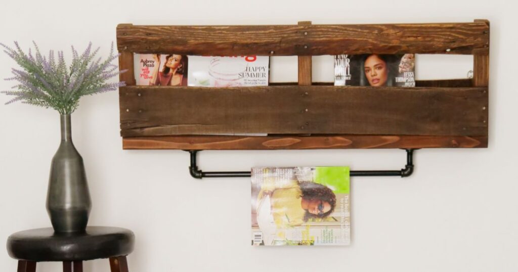 If you have a weekly magazine subscription, it’s not always easy to read the full issue before the next one arrives. Clear clutter off the coffee table with a magazine rack made from part of a pallet board. A few pieces of pipe, flange fittings and elbow fittings hold the page of whatever you’re reading so you can come back to it later without losing your place. Grab a pallet, view the full tutorial, and make one of your own.