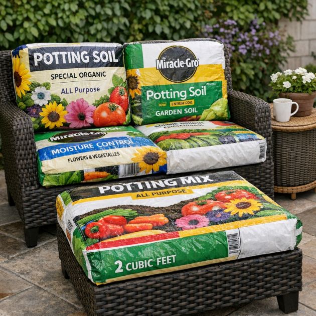 Repurpose empty potting soil bags into moisture-resistant cushion and seat covers for outdoor furniture. Cut the bags to fit your cushions, leaving extra material for seams, and sew or tape them together.The bags’ waterproof properties protect cushions from rain and spills, extending their lifespan. These covers can easily be removed and cleaned, making them a practical addition to any outdoor seating area. Not only do you save money on commercial covers, but you also contribute to reducing waste.