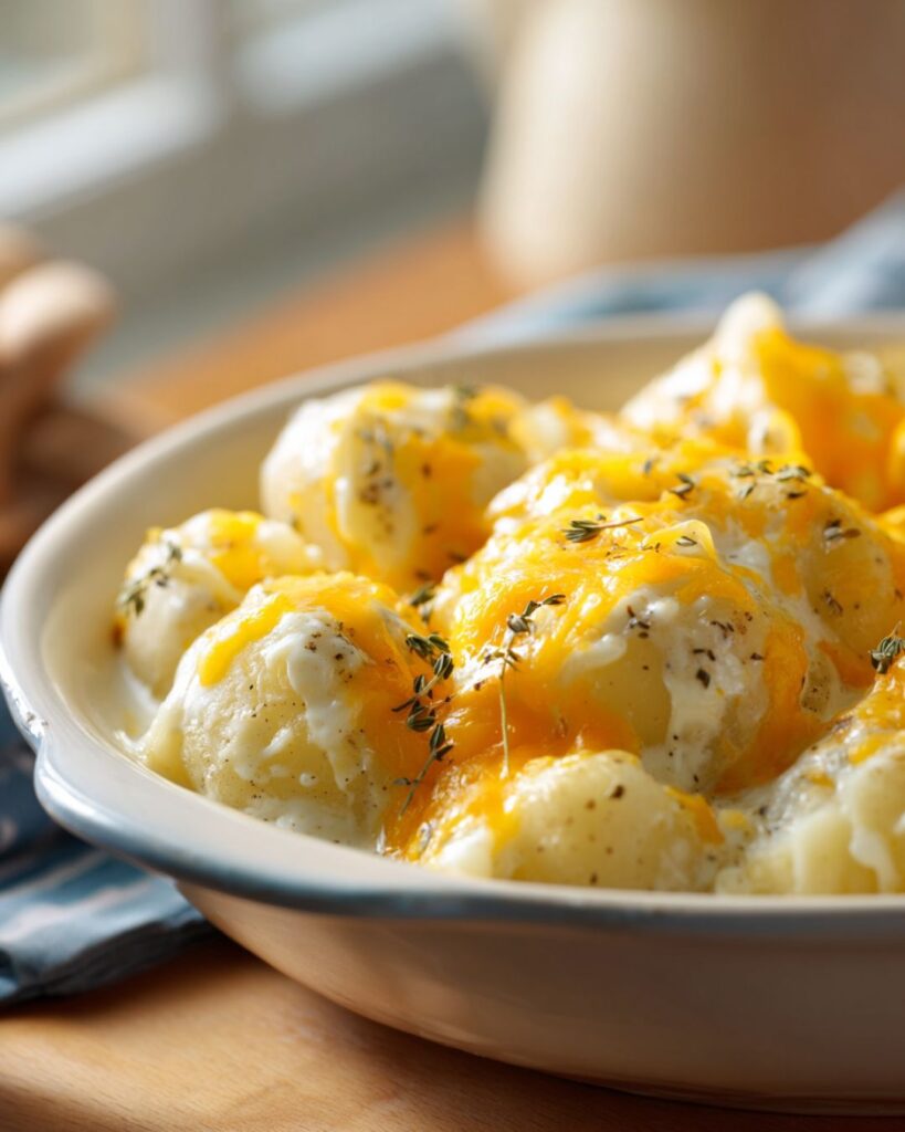 These creamy potatoes pair beautifully with just about any comfort food main dish—think roast chicken, meatloaf, baked ham, or pork chops. They’re also wonderful alongside grilled sausages or a simple pan-seared steak. For a lighter plate, serve them with a big green salad or steamed vegetables like green beans, broccoli, or carrots to balance out the richness. If you’re feeding a crowd, set them out on a buffet with rolls, a simple tossed salad, and maybe a side of roasted vegetables so everyone can build their own plates. They also reheat nicely, so don’t be afraid to double the batch if you’re planning on leftovers for lunches.