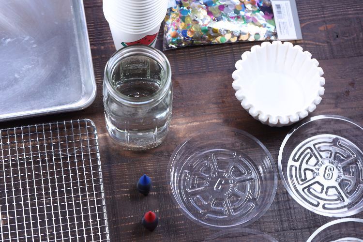 If you’re ready to spring into some springtime decorating but not willing to spend your summer vacation money on the task, we are showing a quick way to let your style bloom with colorful DIY dip-dyed coffee filters paper flowers. These colorful blossoms don’t require lots of talent or even pattens, just some basic cutting and hot glue skills. Materials needed:- Food coloring- Coffee filters- Paper cups- Scissors- Shallow Plastic Dish- Glue gun- Warm water- Cooling rack- Baking sheet- GlitterInstructions1. Gather up the materials on your craft table.